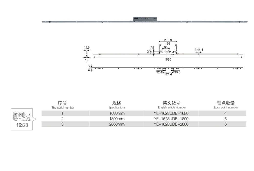 塑鋼多點(diǎn)鎖體總成 16×28