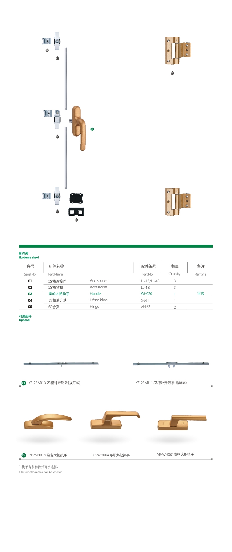 Hardware for aluminum windows and doors