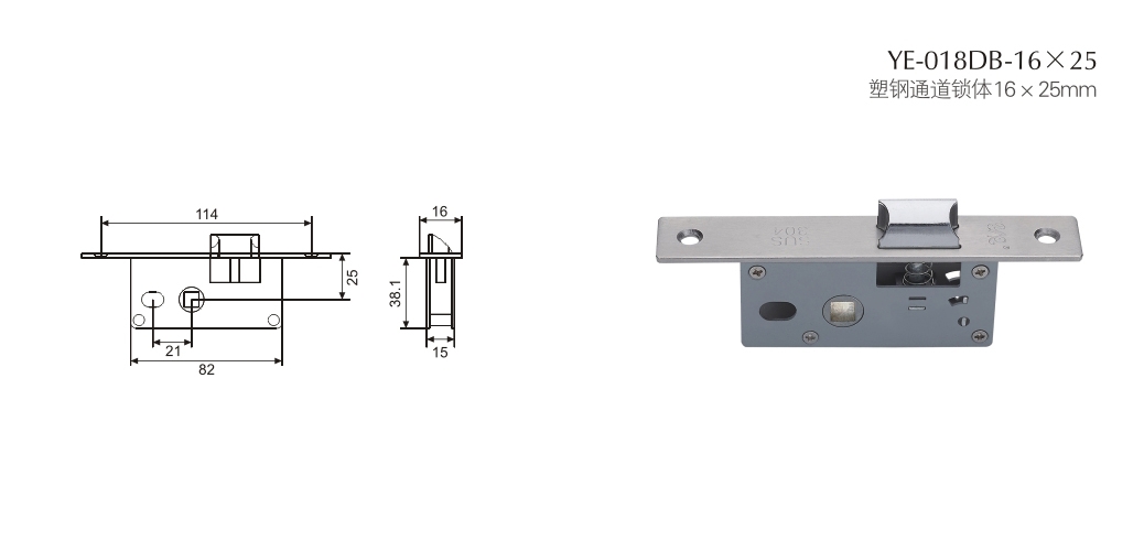 塑鋼通道鎖體16×25mm
